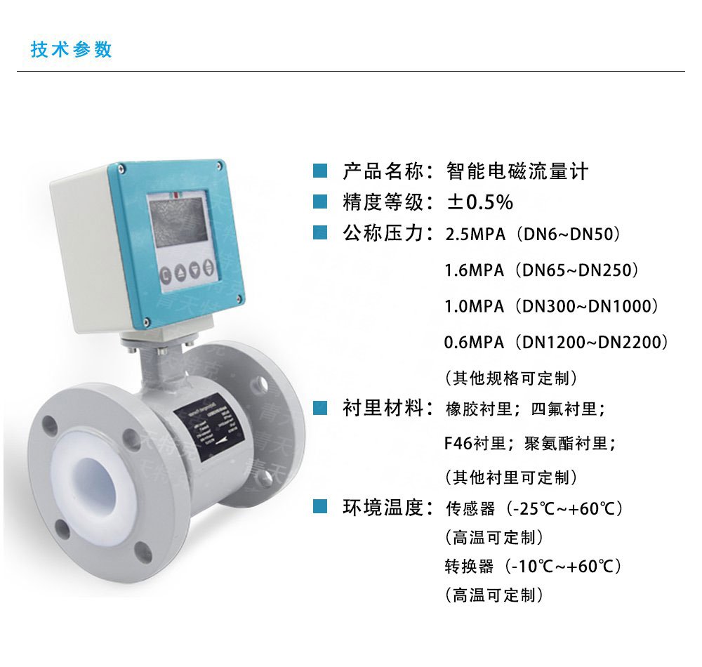 電磁流量計系列公稱通徑DN15~DN3000。